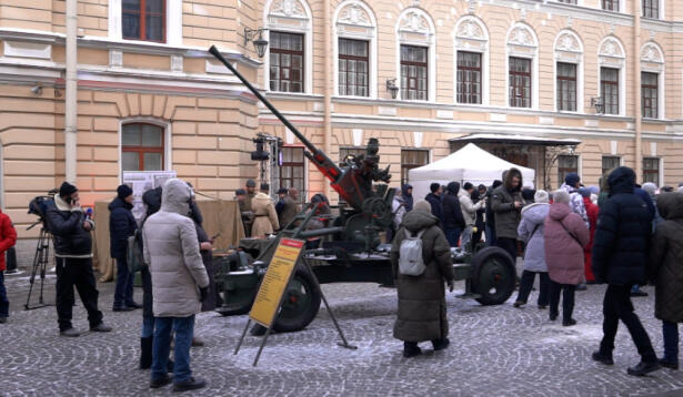 Видео 27 января, 17:45 Во дворе Капеллы воссоздали атмосферу блокады Гости могли ознакомиться с образцами военной техники. Смотреть
