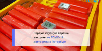 15 октября, 20:18 Петербург получил 400 доз вакцины от COVID-19 В город поступила первая крупная партия вакцины от коронавируса. Читать