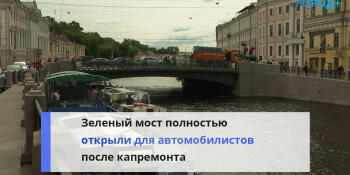 15 июля, 17:02 Масштабная реконструкция: В Петербурге завершили капремонт Зеленого моста В центре Петербурге завершили капитальный ремонт Зеленого моста. Стоимость работ составила 497,5 млн рублей. Читать