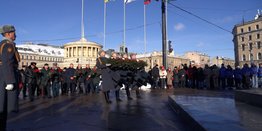23 февраля, 13:15 К обелиску «Город-Герой Ленинград» возложили цветы Память павших воинов почтили минутой молчания. Смотреть видео