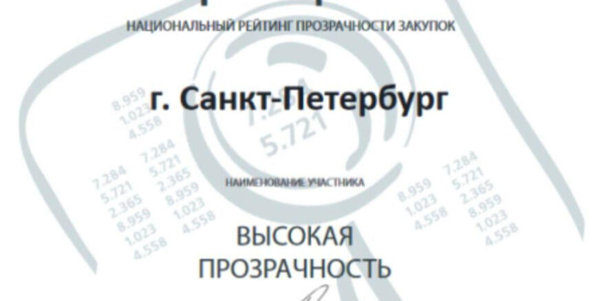 Жюри проекта оценило работу петербургского ведомства. По результатам рейтинга комитет по государственному заказу получил статус «Высокая прозрачность». В 2022 году ведомство Петербурга поднялось на пять строчек в национальном рейтинге.