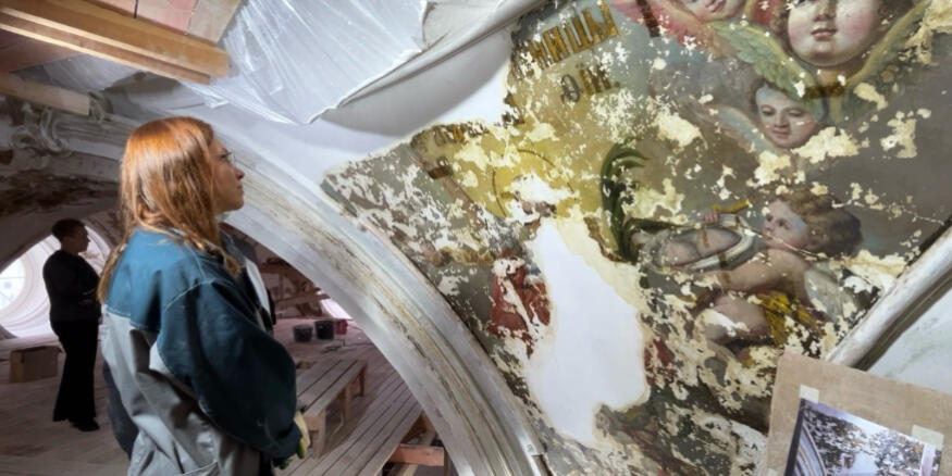 «В ходе расчисток раскрываются фрагменты росписи масляными красками по штукатурке с изображением Святых Великомучениц Екатерины, Дарьи, Анастасии и Аглаи. Ни один из лепных элементов в интерьере церкви не повторяется — каждая фигура, ветка, бутон цветка были выполнены мастерами индивидуально», — подчеркнули в КГИОП.