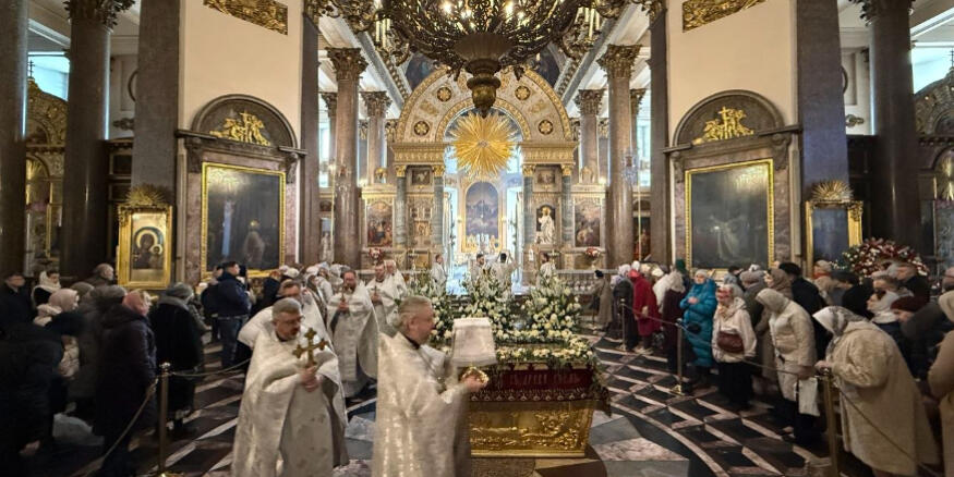 Главную службу в Казанском соборе возглавил митрополит Санкт-Петербургский и Ладожский Варсонофий.