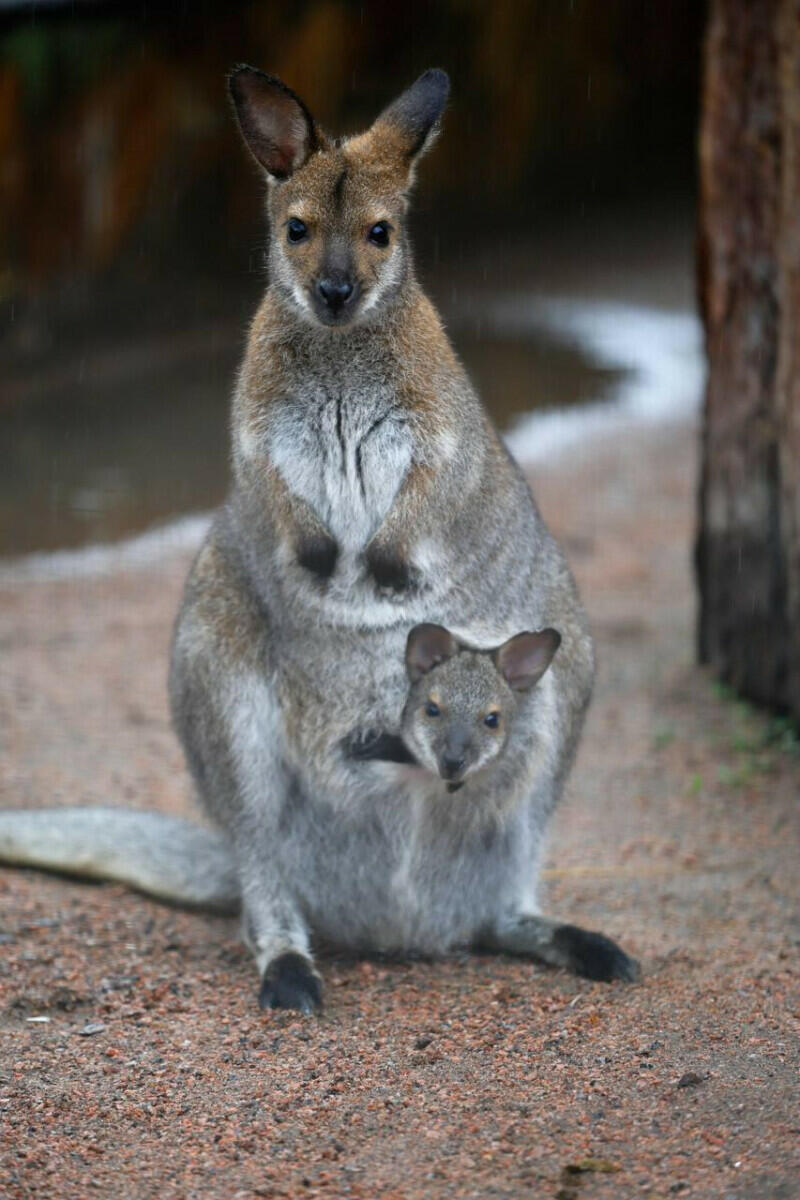 Ленинградский зоопарк показал новых обитателей — четырех детенышей кенгуру Беннетта. Они родились шесть месяцев назад и все это время провели в сумках у мам.