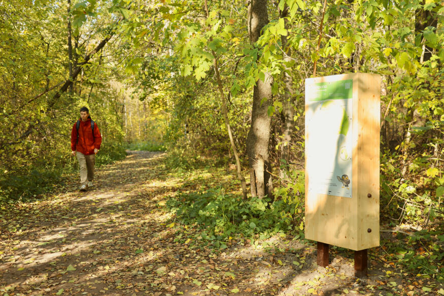 Для прогулок в лесопарке проложили деревянные настилы, а также оборудовали места отдыха и информационные стенды. С помощью QR-кодов посетители смогут узнать об обитателях заказника, в котором можно встретить 76 видов птиц и 14 видов млекопитающих.