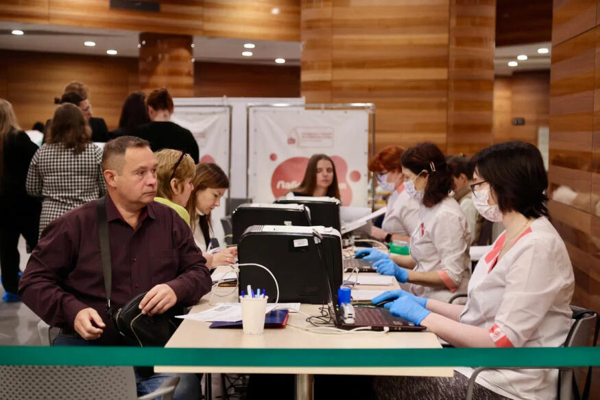 В «Невской ратуше» прошла масштабная донорская акция, в которой поучаствовали более 100 человек. Кровь сдавали молодые представители администрации Петербурга. Все желающие смогли записаться в Федеральный регистр доноров костного мозга.